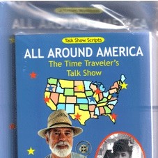The trip is done as a traveling talk show. At each stop, the talk show host meets a local guide, and then special guests from across time tell